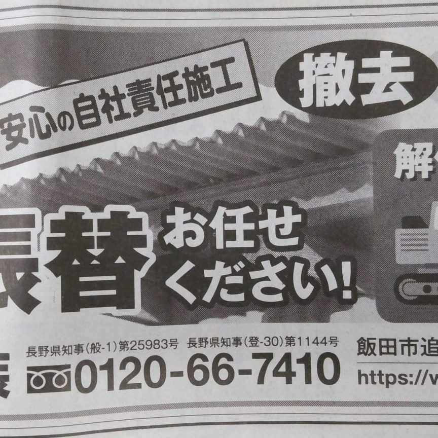 4月252020お知らせ飯田市の地方新聞『南信州』です。 波板の撤去・張替お任せ下さい! 投稿:事務 Category: お知らせ2020年4月25日Tags: 2020年4月 この記事を共有する Share on XShare on X Pin itShare on Pinterest Share on FacebookShare on Facebook Share on LinkedInShare on LinkedIn Post navigationPreviousPrevious post:上伊那郡I様邸、今日4/24の施工です。NextNext post:上伊那郡I様邸アパート、完成しました!From the Same Category2026年始まりました!2026年1月5日年末年始休業のお知らせ2025年12月27日伊那市I様邸 着工しました!2025年11月1日伊那市T様邸 現場レポート!2025年10月24日飯田市E様邸 現場レポート!2025年10月18日伊那市K様邸 現場レポート!2025年9月12日