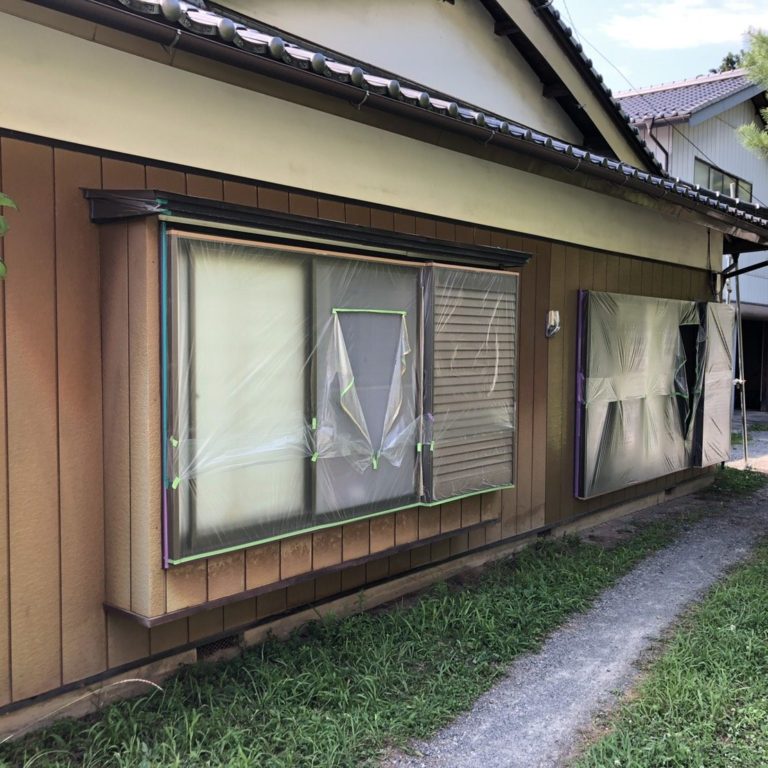 昨日、高圧洗浄をして本日は養生作業です。 撮影:営業担当 投稿:事務