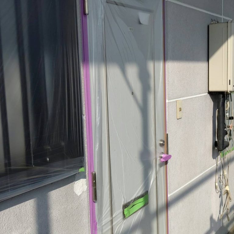 アパート:養生終了後、外壁下塗りです。 撮影:営業担当