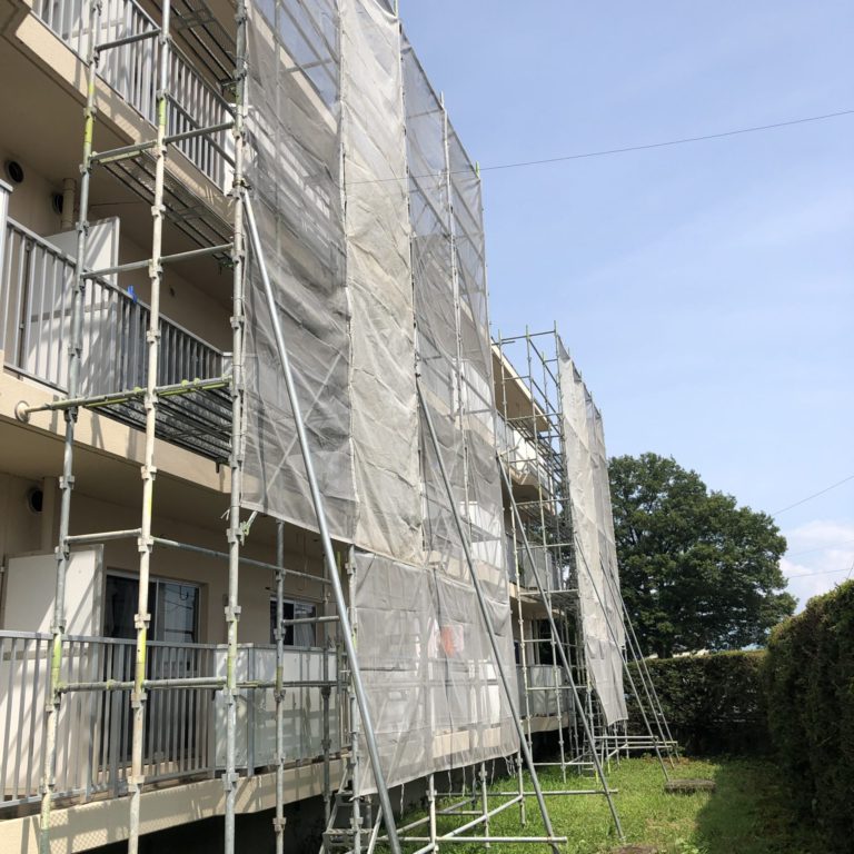 アパート外壁塗装及び上階ベランダシーリング工事施工中です