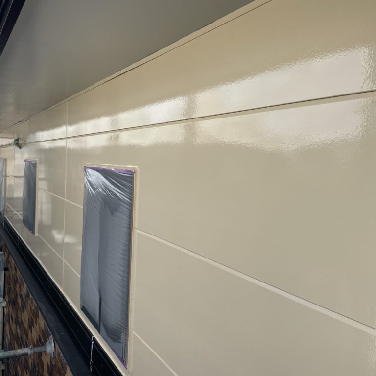賃貸住宅外壁屋根塗装、外壁中塗りから上塗りです!