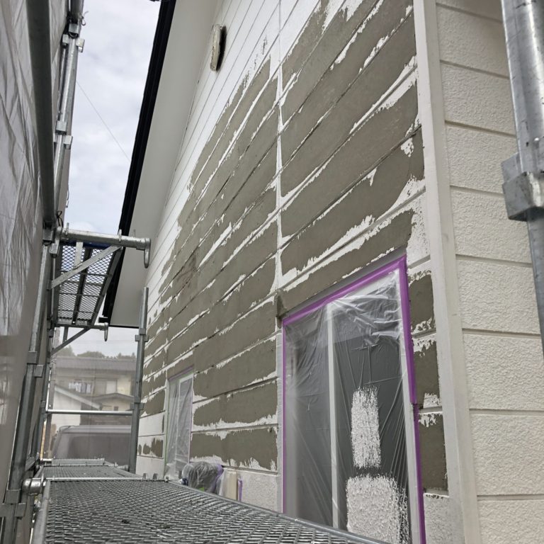 戸建アパート1棟目、プレミアムシリコン仕上げによる外壁塗装途中経過です